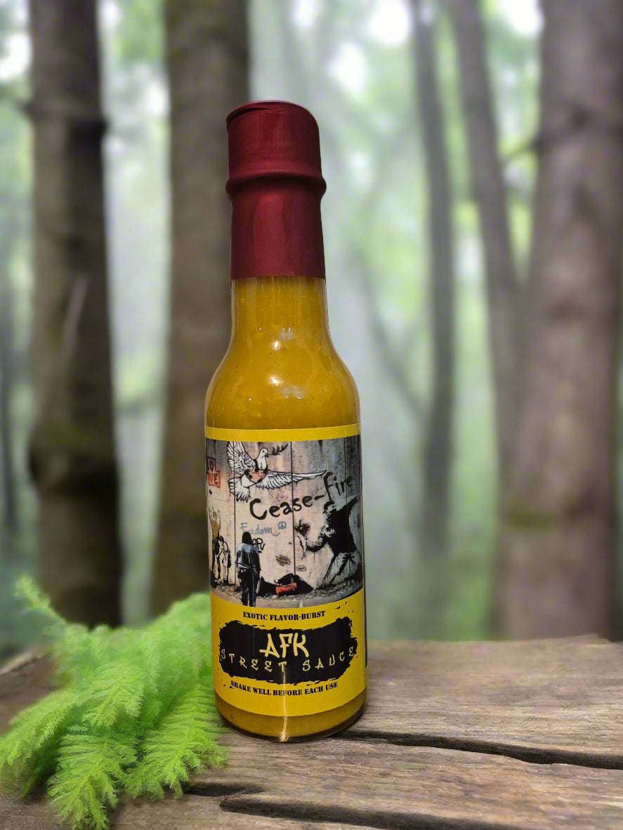 Welcome to our best selling sauce! Made with Kristian peppers, honey and exotic sweet peppers, this tongue-stinger packs loads of incredible flavor with a peaceful heat level around 76,000 SHU's. This is the perfect breakfast sauce!