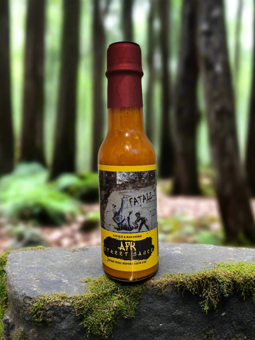While not as fatal as it sounds, this citrusy & sweet sauce has amazing flavor and a code of conduct: STRIKE FIRST - STRIKE HARD - NO MERCY! If you don't belong on Spice Street, the 325,000 SHU's of the Fatalii & Savina peppers will earn another assault charge.